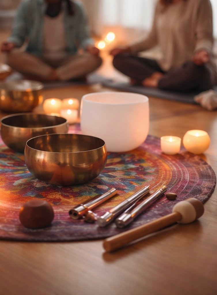 Durante el taller nos iniciamos en la meditación guiada, la respiración consciente y la escucha del cuerpo, acompañados por el sonido de cuencos tibetanos, cuencos de cuarzo y diapasones.